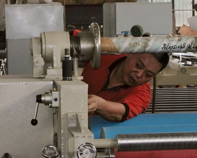 員工在安裝設備