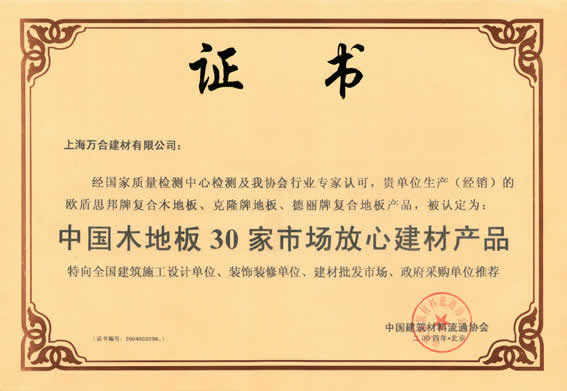 中國木地板30家市場放心建材產品