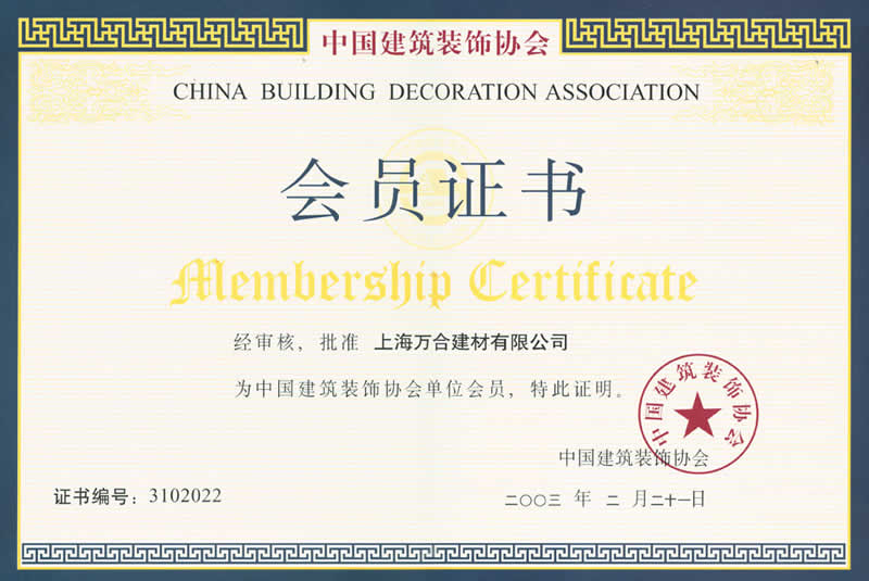 中國建筑裝飾協會會員證書