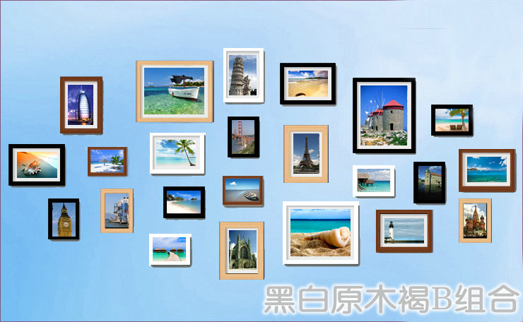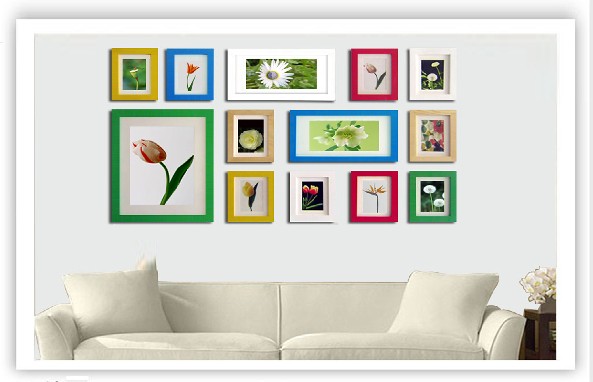 13A01彩色混搭實木相框墻